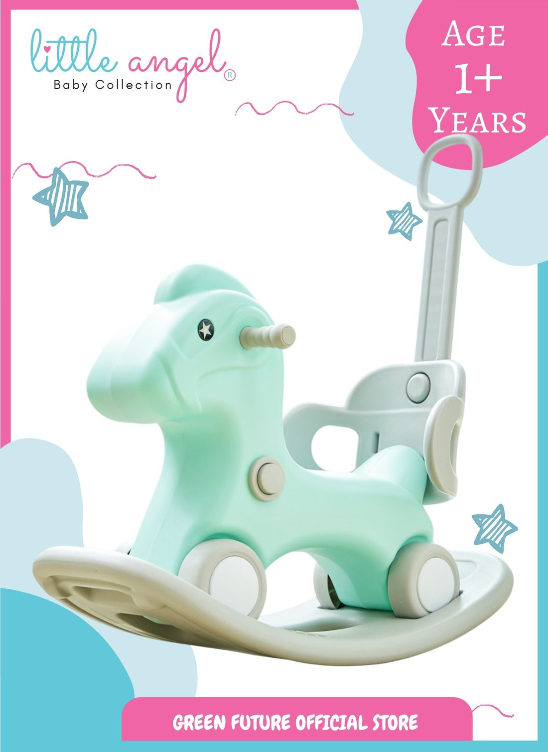 Little Angel Kids Rocking Horse Ride-On Toy 2-in-1 with Wheels, Detachable Backrest, Safe Sturdy Design for Toddlers, Perfect for Indoor Play - Green