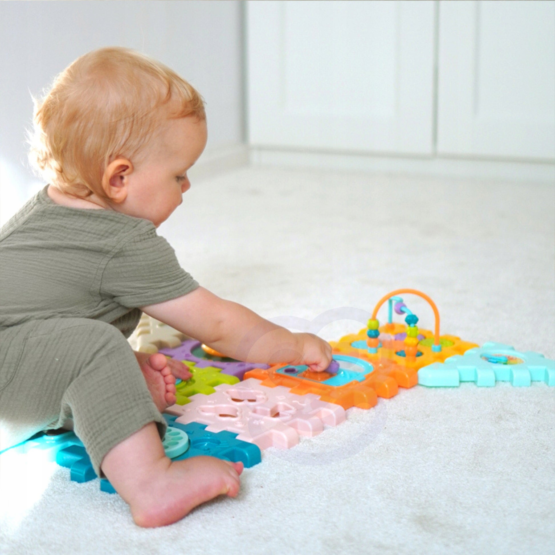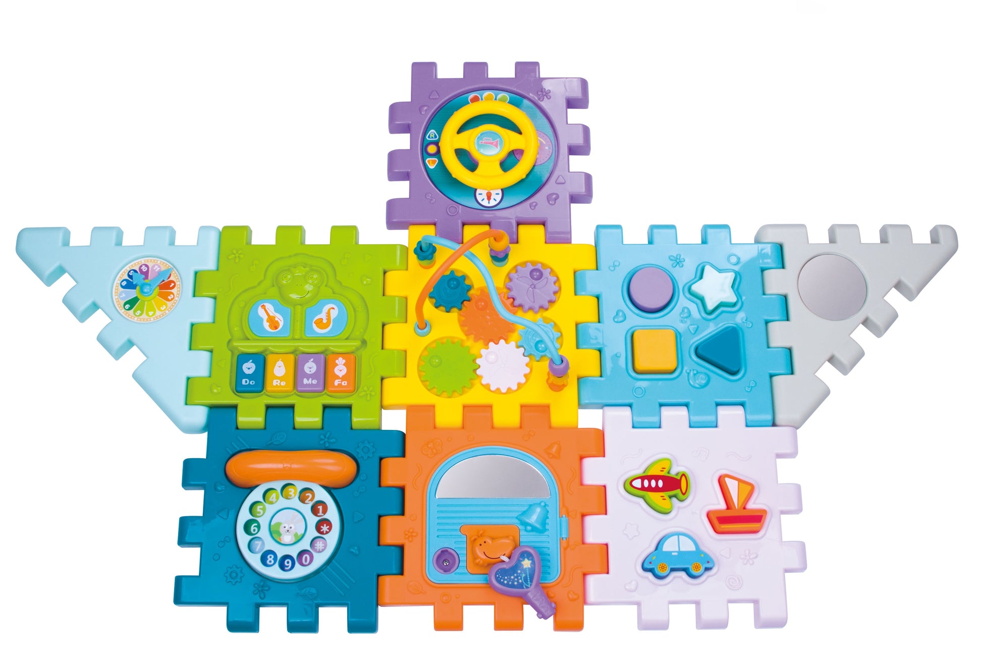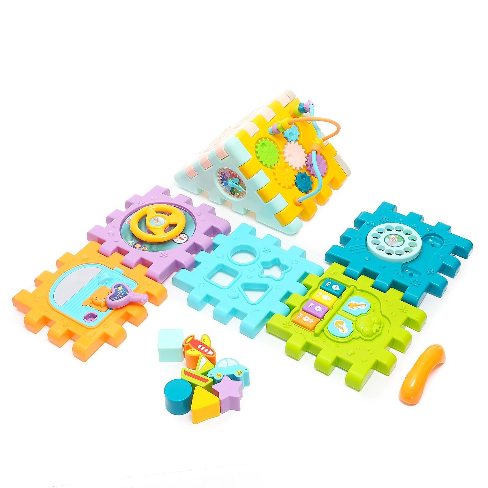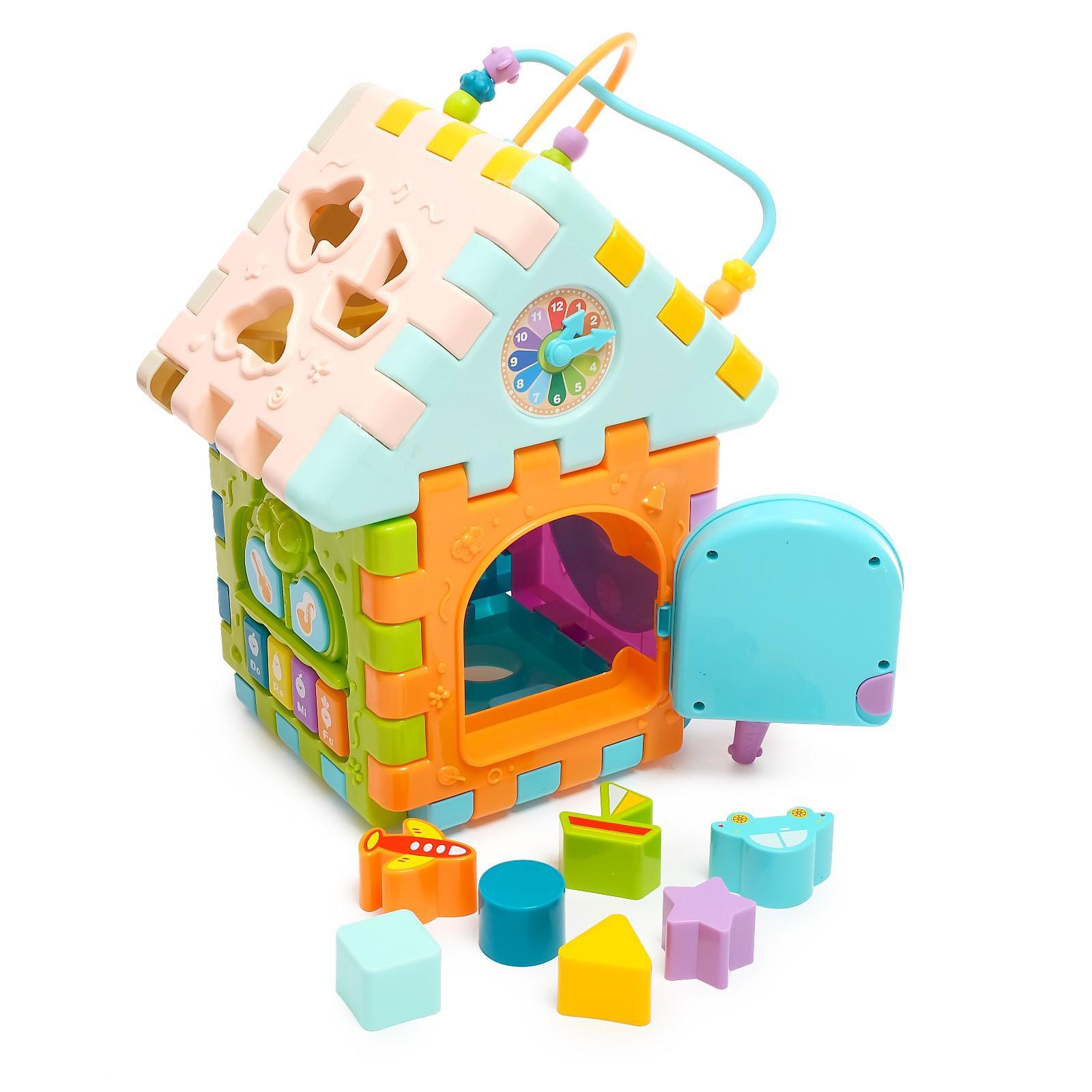 - Interactive Learning House: Includes various activities like a shape sorter, gears, telephone, and more to stimulate cognitive development.
