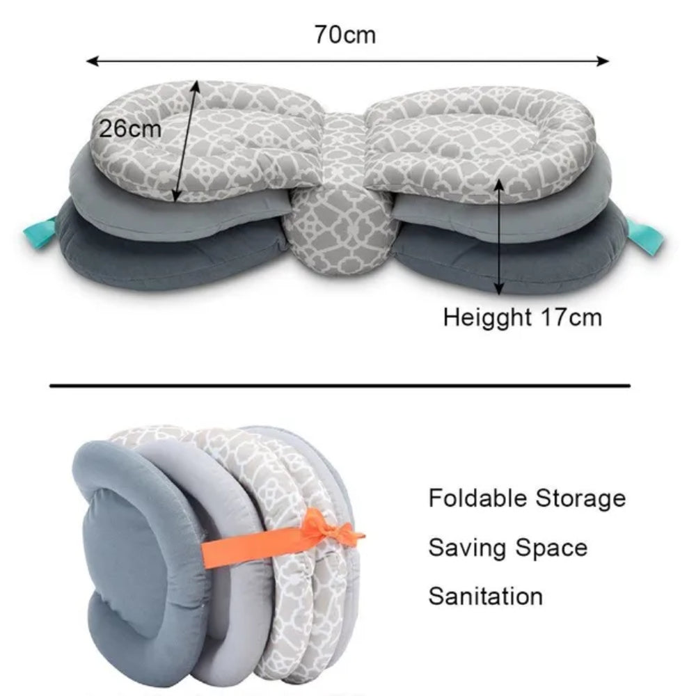 - Supports breastfeeding, bottle-feeding, and tummy time.