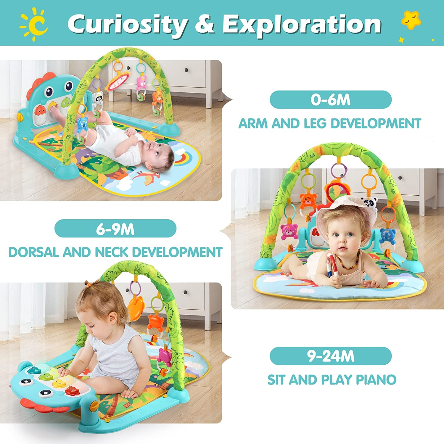 The Huanger Baby Piano Playmat with Music is a versatile and interactive play gym designed for newborns and infants. Featuring a soft, colorful mat with an overhead arch that includes hanging toys and a baby piano with music, it stimulates sensory development and encourages motor skills. This durable and safe playmat provides hours of fun, helping babies discover new textures, sounds, and movements. Ideal for tummy time and early learning, this playmat is a great gift for parents and their little ones.