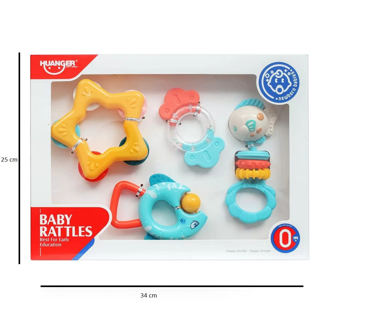 - 4-Piece Sensory Rattle & Teether Set: Offers a variety of colorful toys that support sensory play and teething relief.
