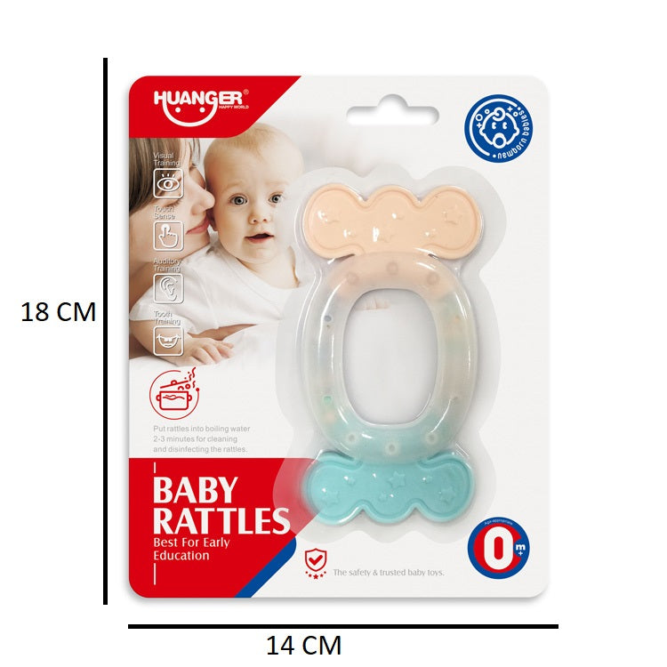 Baby Silicone Teether, Dual Color Soft Teething Toy for 3+ Month Old Babies, BPA Free, Safe and Sensory Play Aid