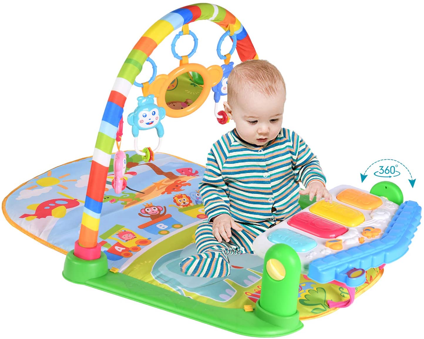 - 2-in-1 Design: Combines a piano playmat with hanging toys for interactive play and early development.