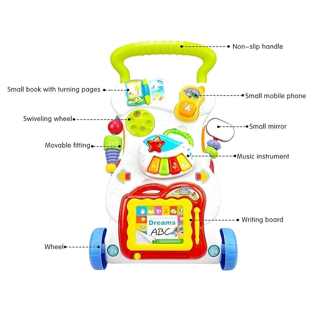 - Baby Walker Toddler Trolley Kids Learning Educational Musical Help Walker with Adjustable Screw Children First Steps Car.