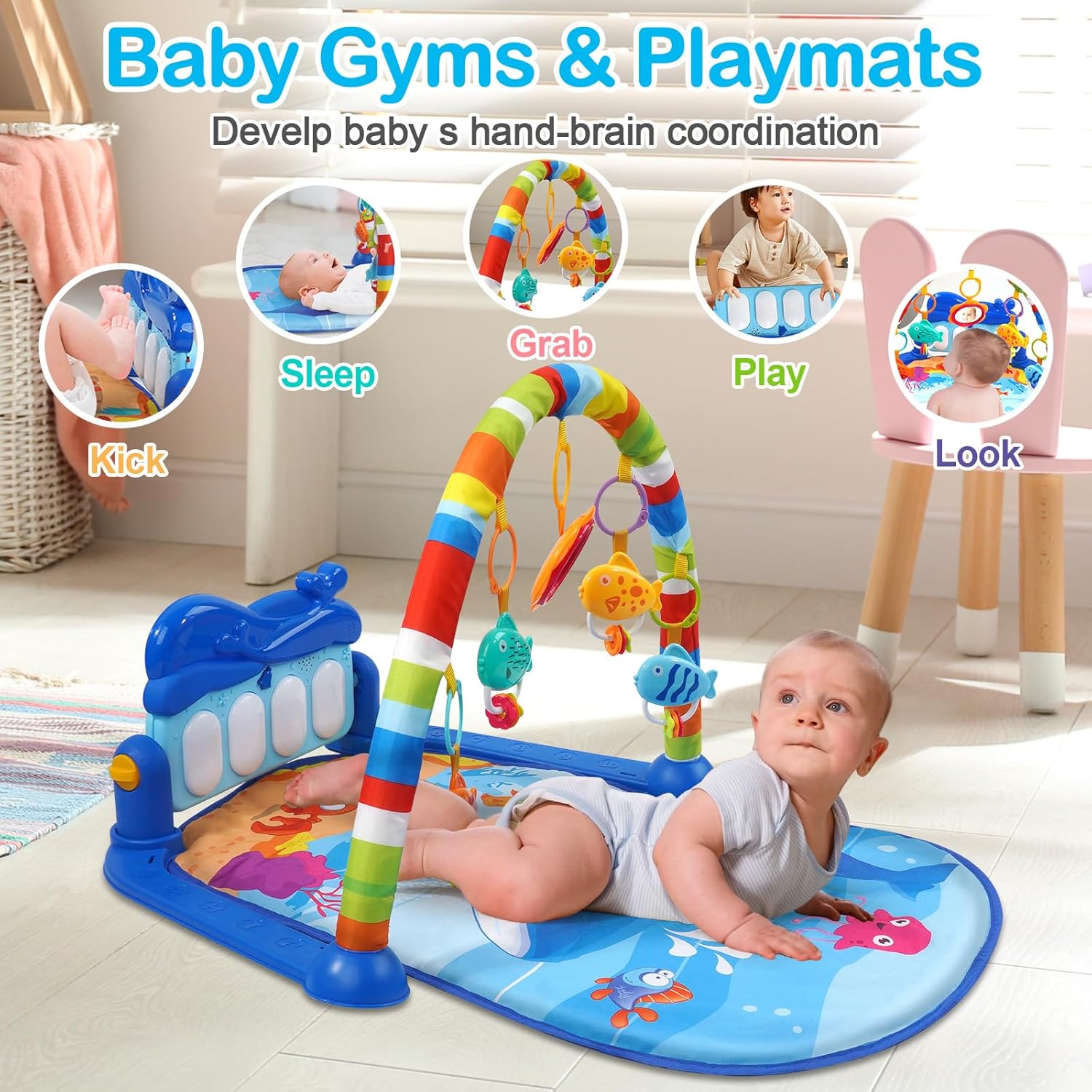 Huanger - Baby Playmat w/ Piano Music, 2-in-1 Hanging Toys and Mat