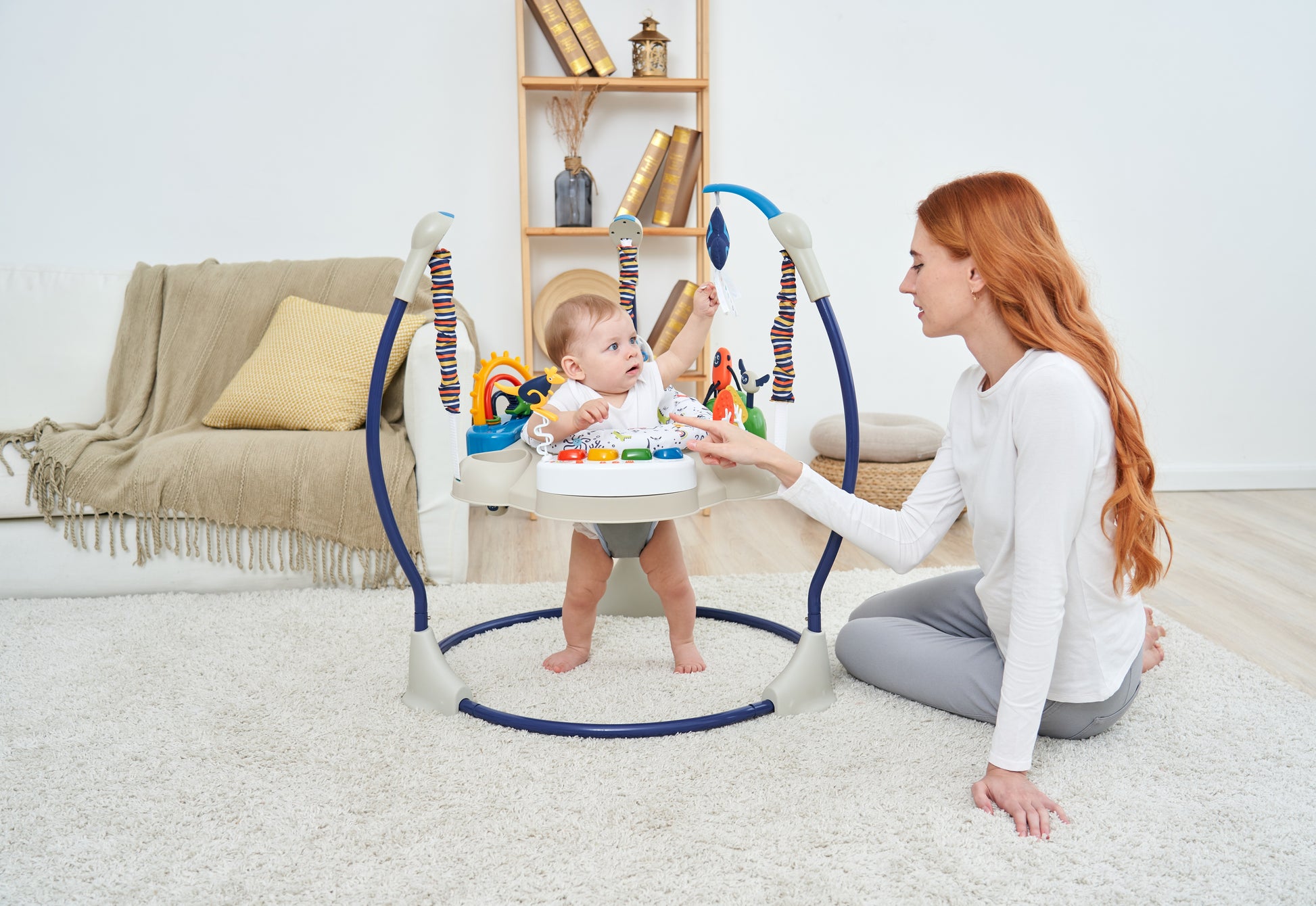 - 🌈 Lights & Visuals – Bright lights keep baby visually engaged.