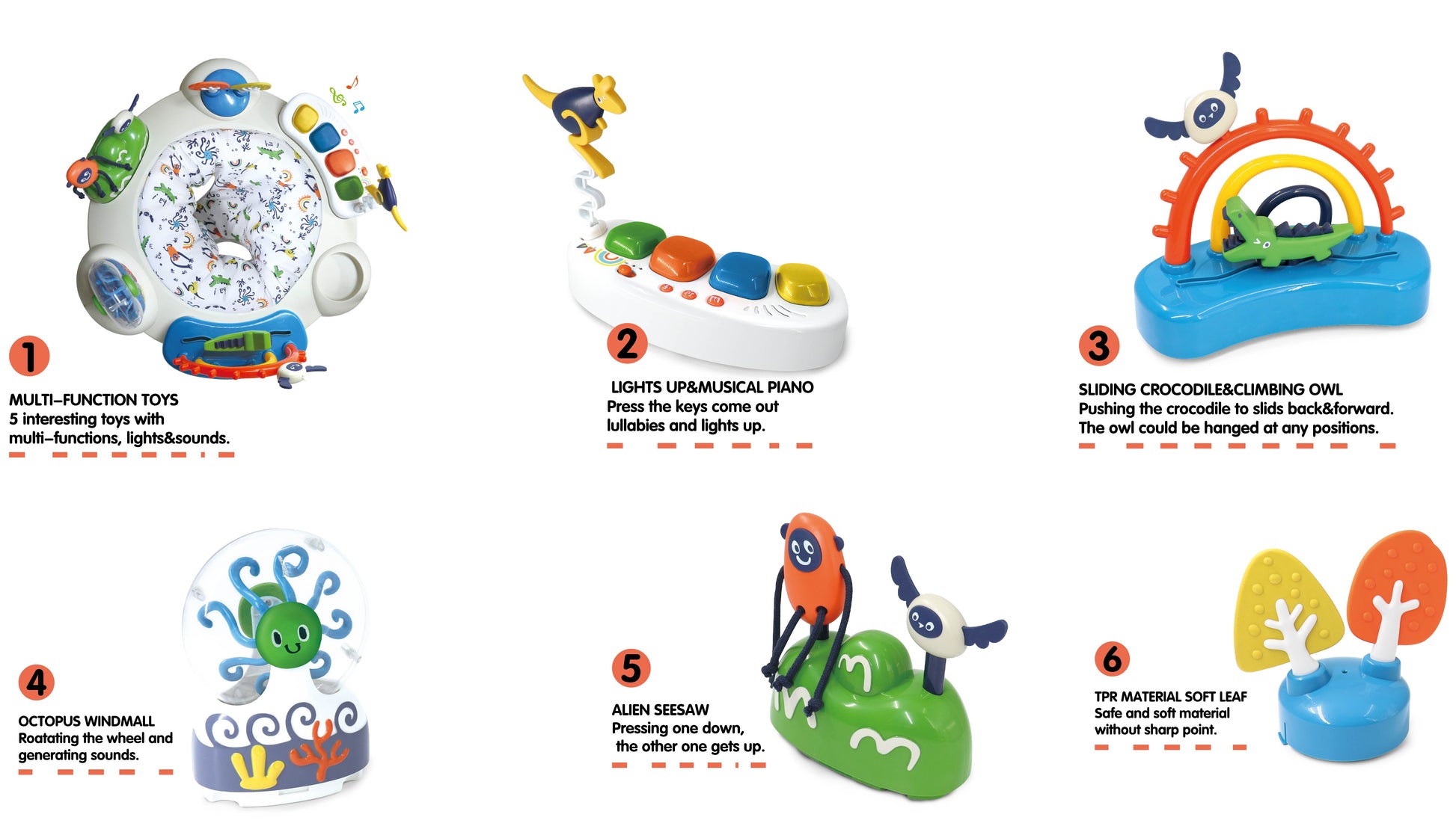 - 🧸 Multi-Sensory Toys – Spinners, rattles, teethers, and hanging characters.