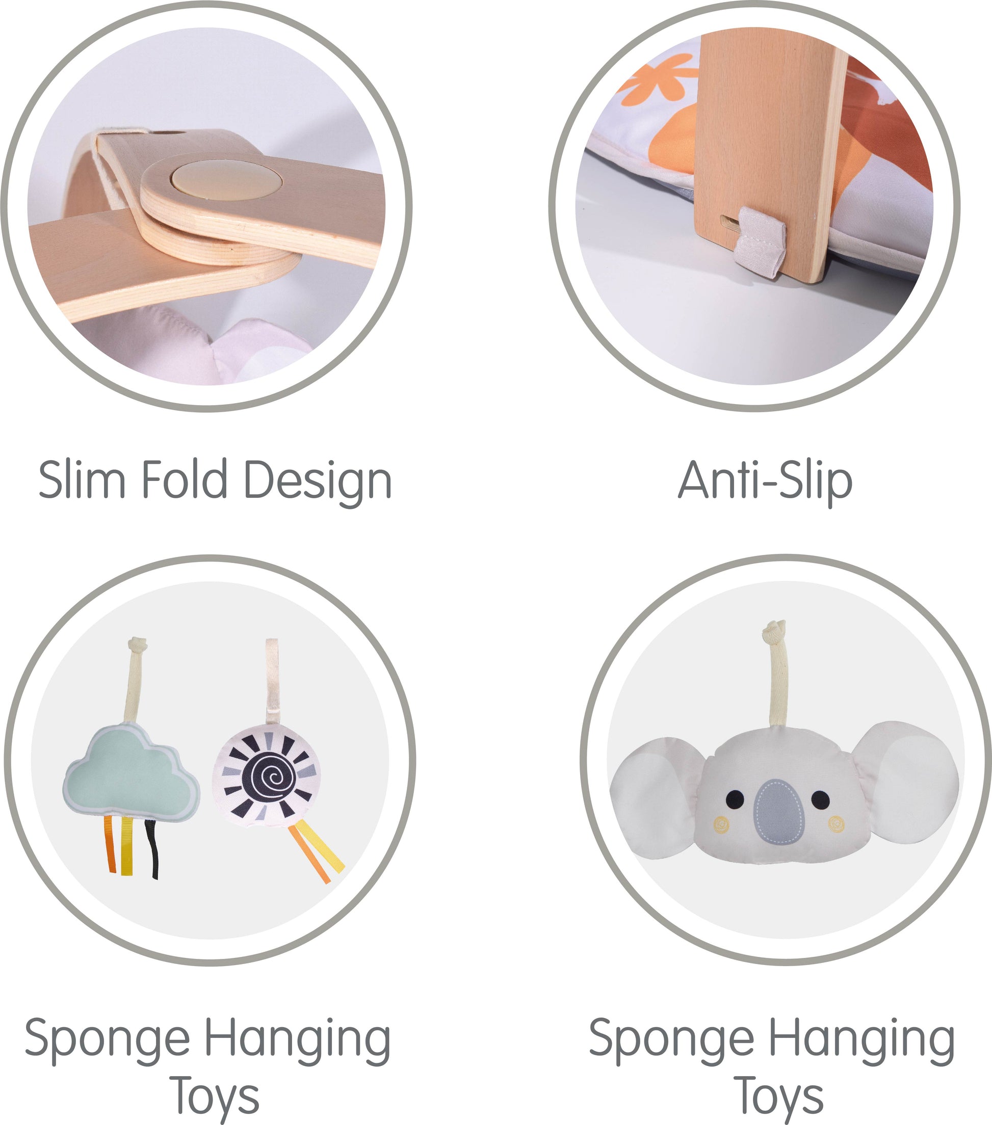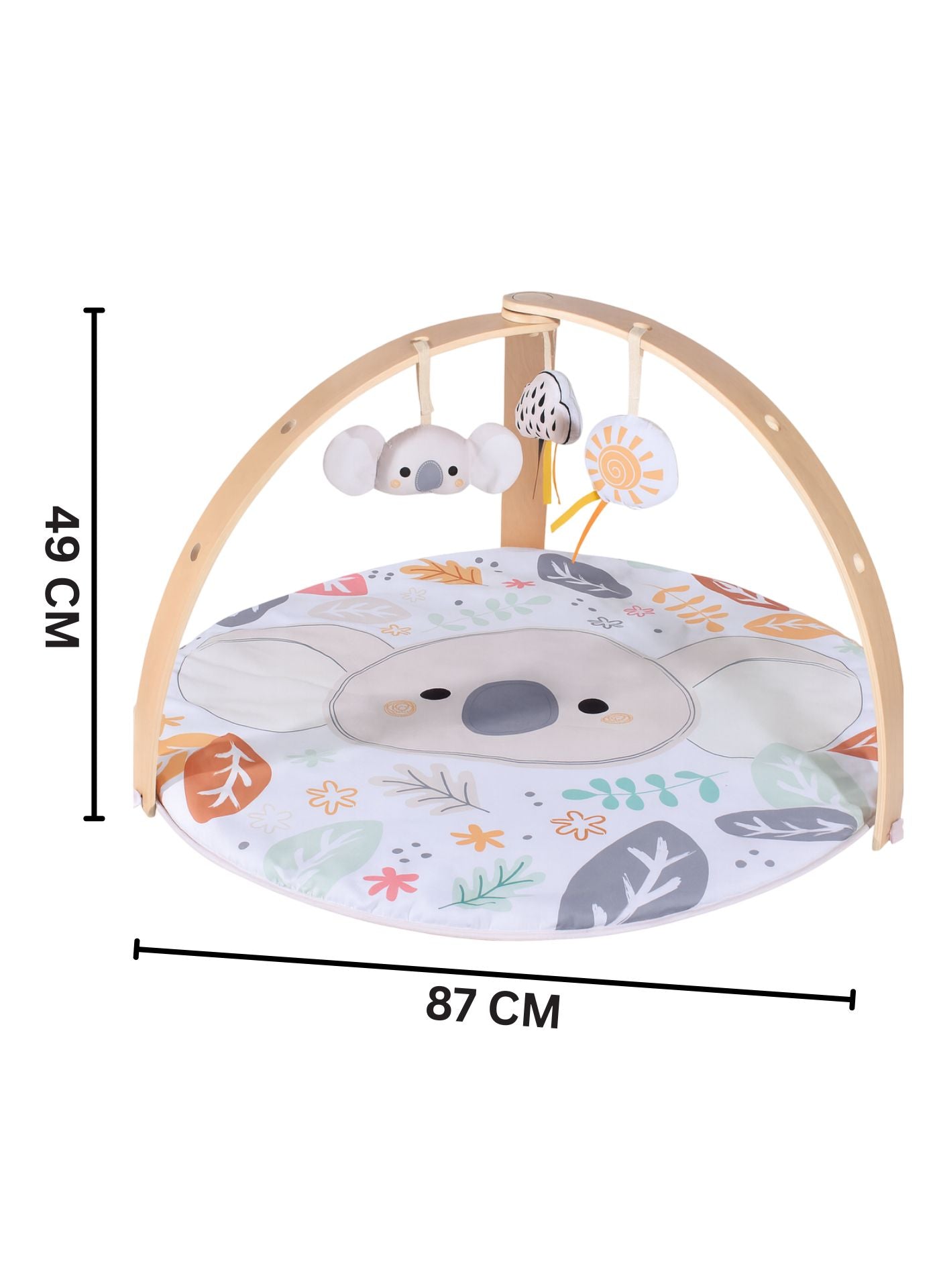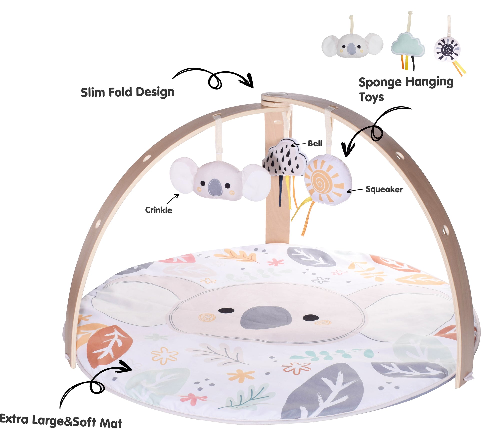 Konig Kids - Baby Wooden Play Gym Mat with Soft Toys & Leaf Design