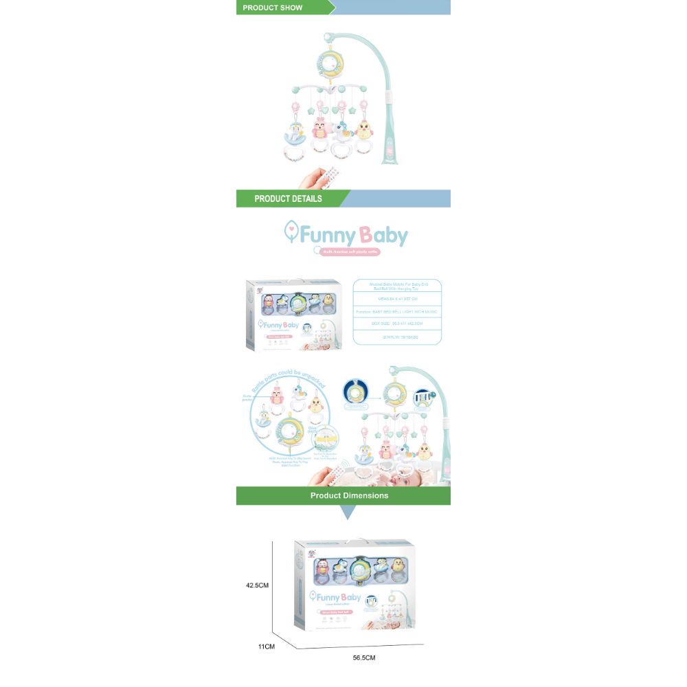 Soothe your little one into sweet dreams with the Little Angel Baby Crib Musical Mobile Toy with Remote - Mint 🌙💤. Featuring adorable hanging toys, soft melodies, and gentle rotation, this mobile creates a calming atmosphere that helps babies relax and fall asleep peacefully. The remote control allows parents to easily switch between music, lights, and motion from a distance. A perfect nursery essential that blends comfort, fun, and function in one beautiful design!