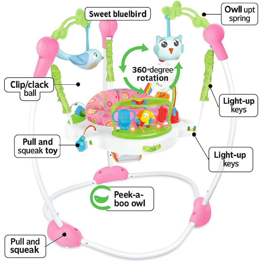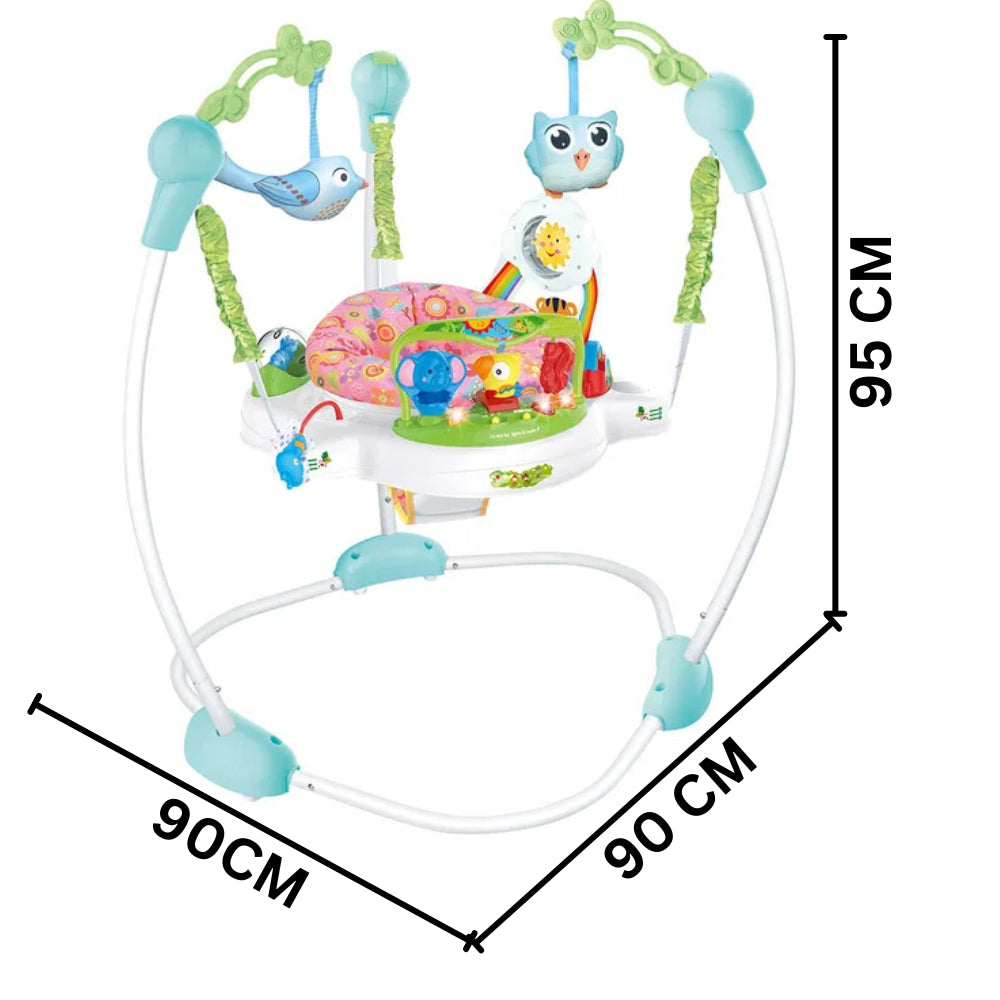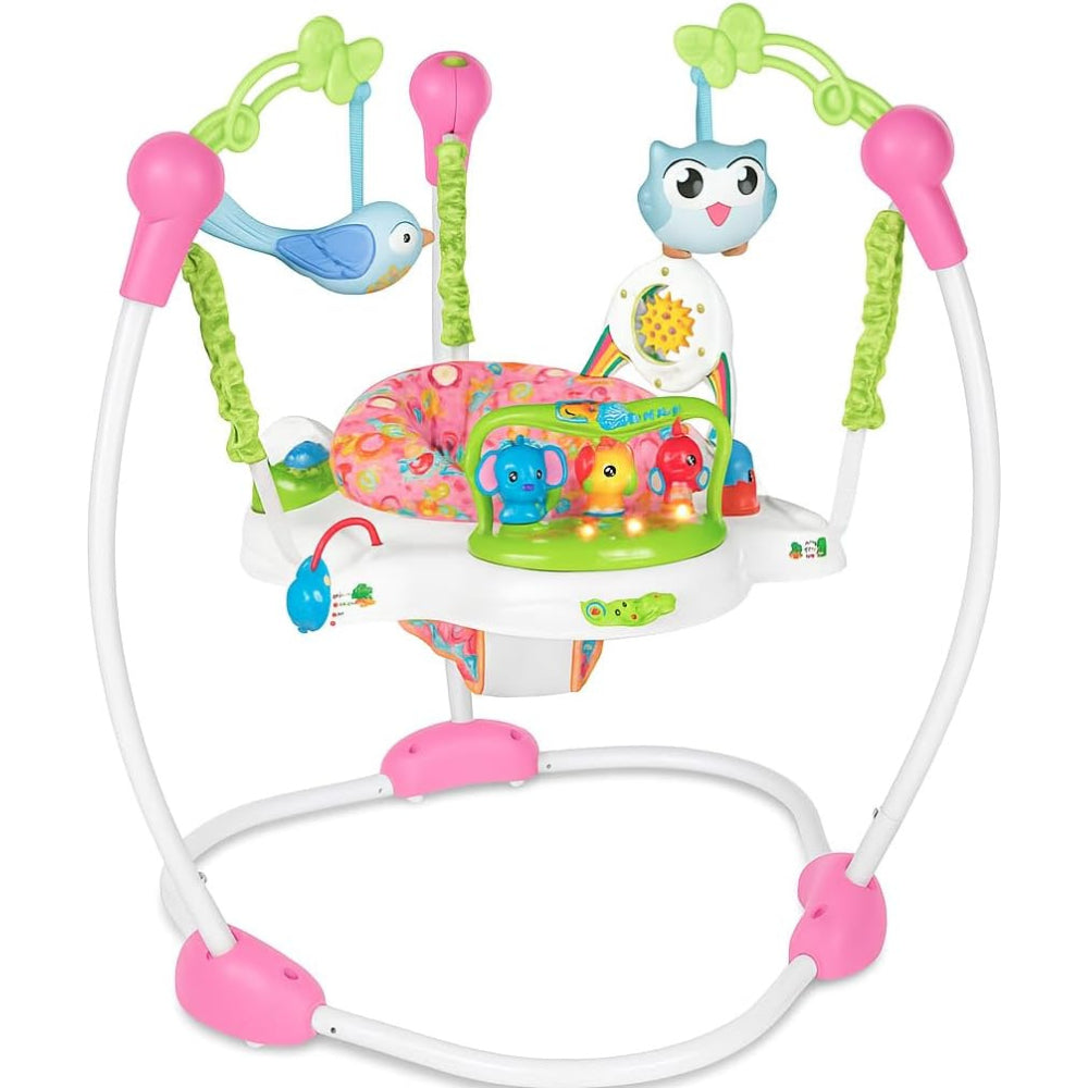 Designed to encourage motor skill development, this jumper features colorful hanging toys, interactive music, and a comfortable rotating seat that lets your little one bounce, spin, and explore safely.