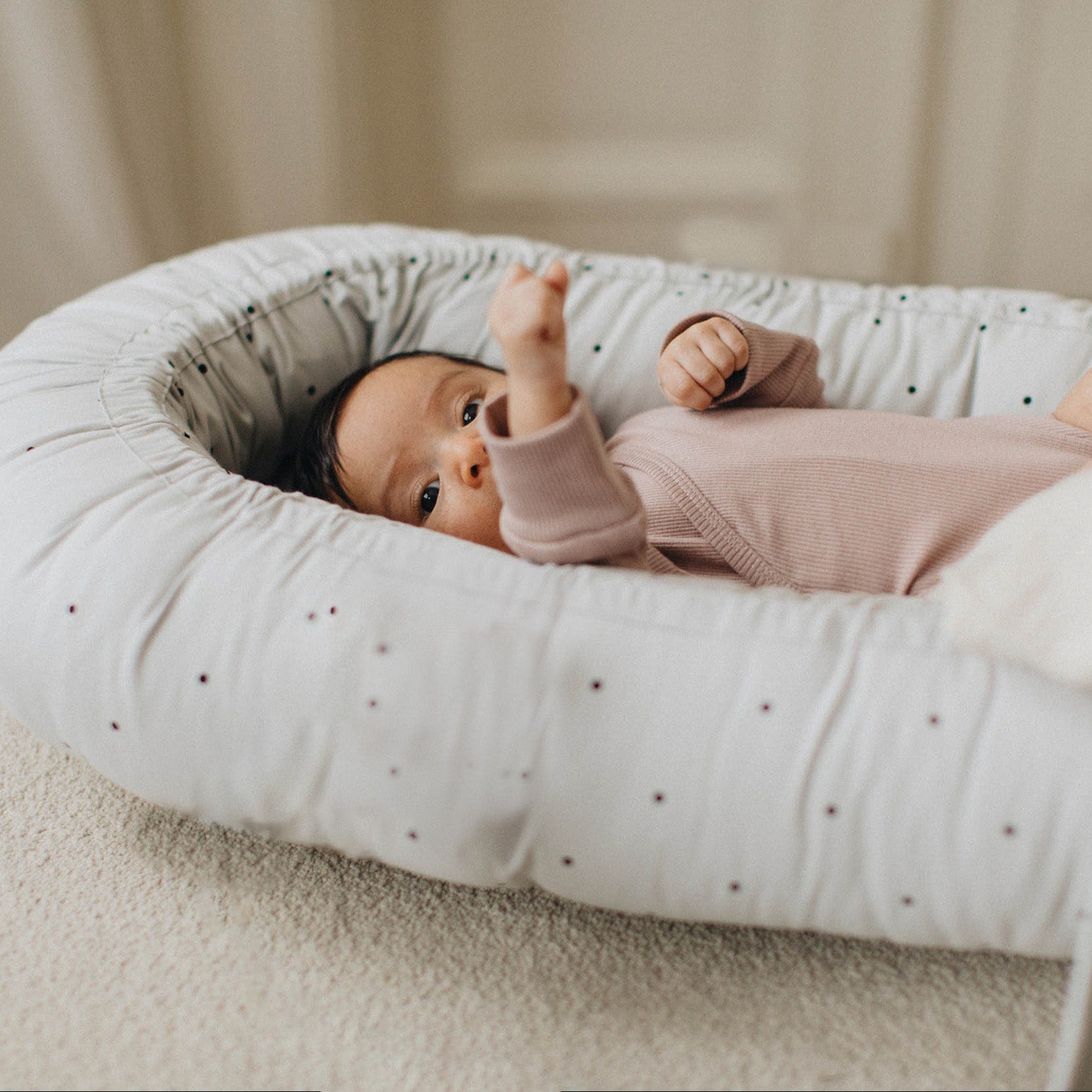 - Portable baby lounger nest – folds compactly for travel & easy storage