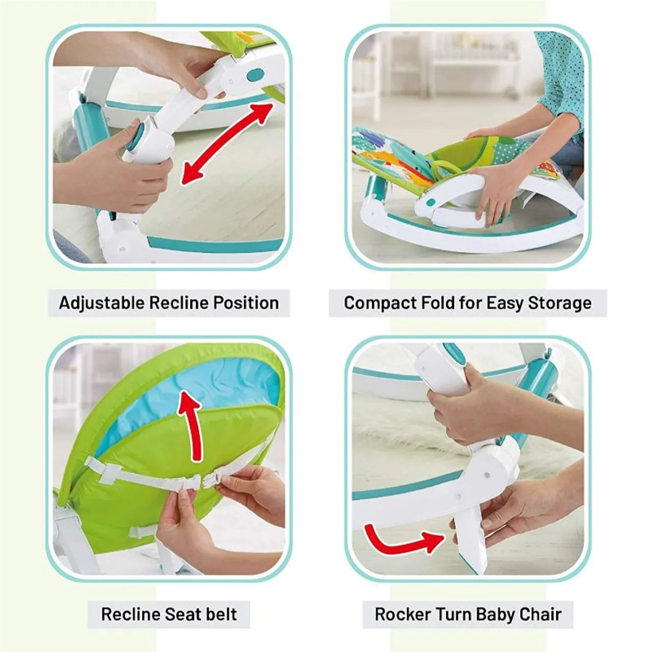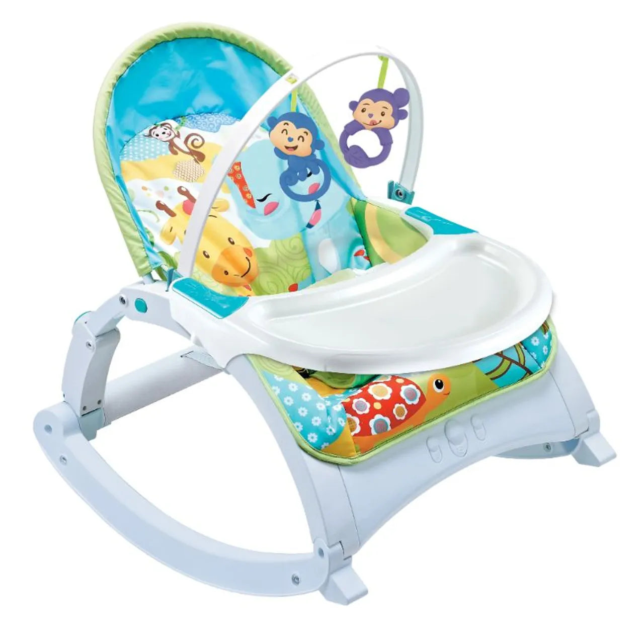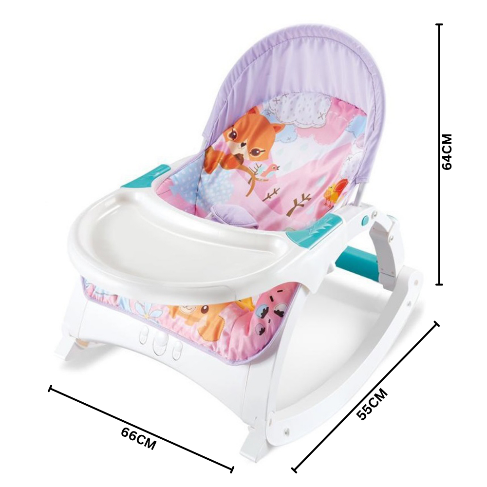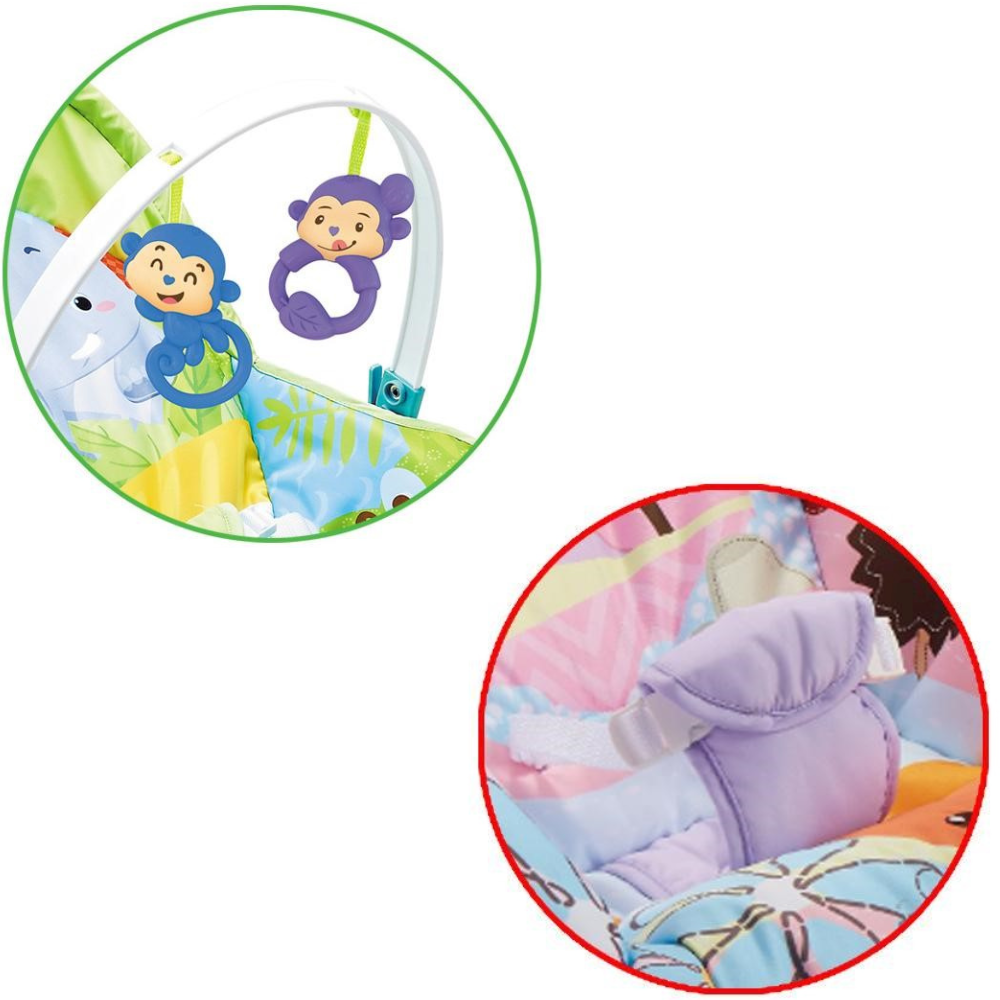 Equipped with a removable feeding tray and hanging toys, it encourages play, rest, and feeding time all in one cozy space. The soft padded seat ensures comfort, while the gentle rocking motion soothes your baby.
