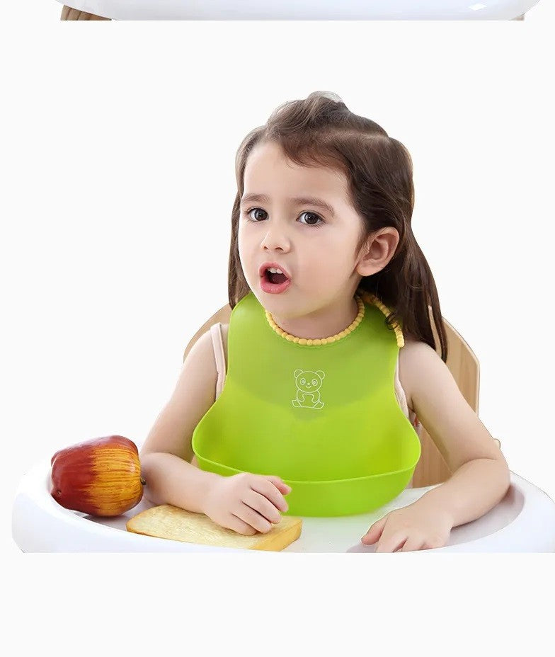 Little Angel - Baby Silicone Bib With Food Catcher - Blue/Green/pink