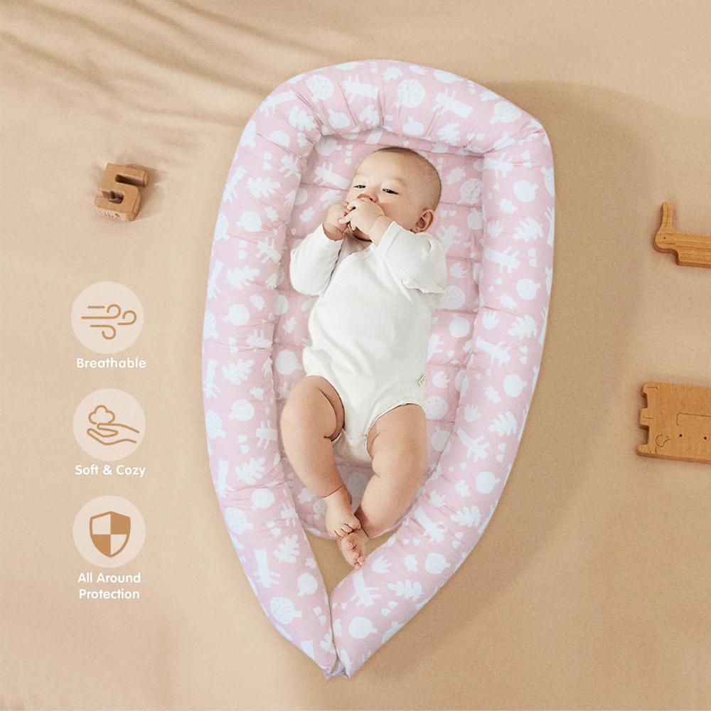 - 360° cozy newborn bed design – prevents rolling & supports flat head prevention