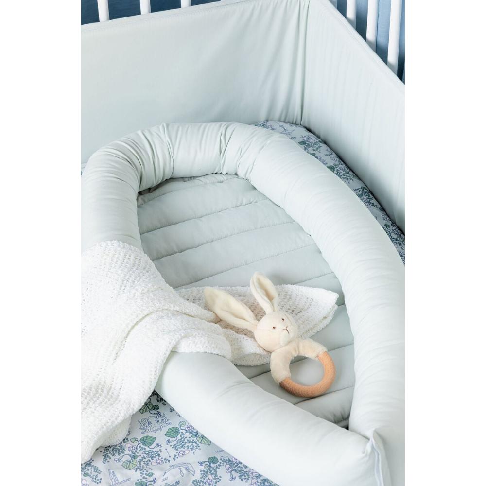- Breathable newborn infant sleeper pod with soft padded bumper