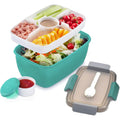Little Angel - Kids 2 Layered Lunch Box With 6 Compartment Cutlery Set - Blue, Green, Pink