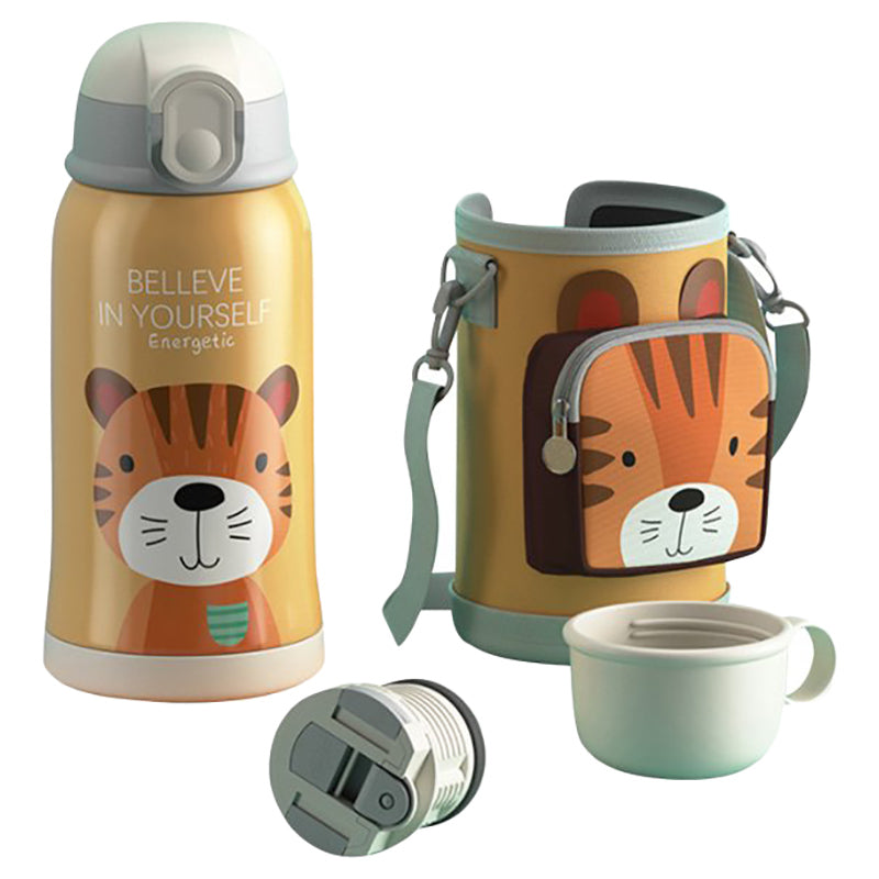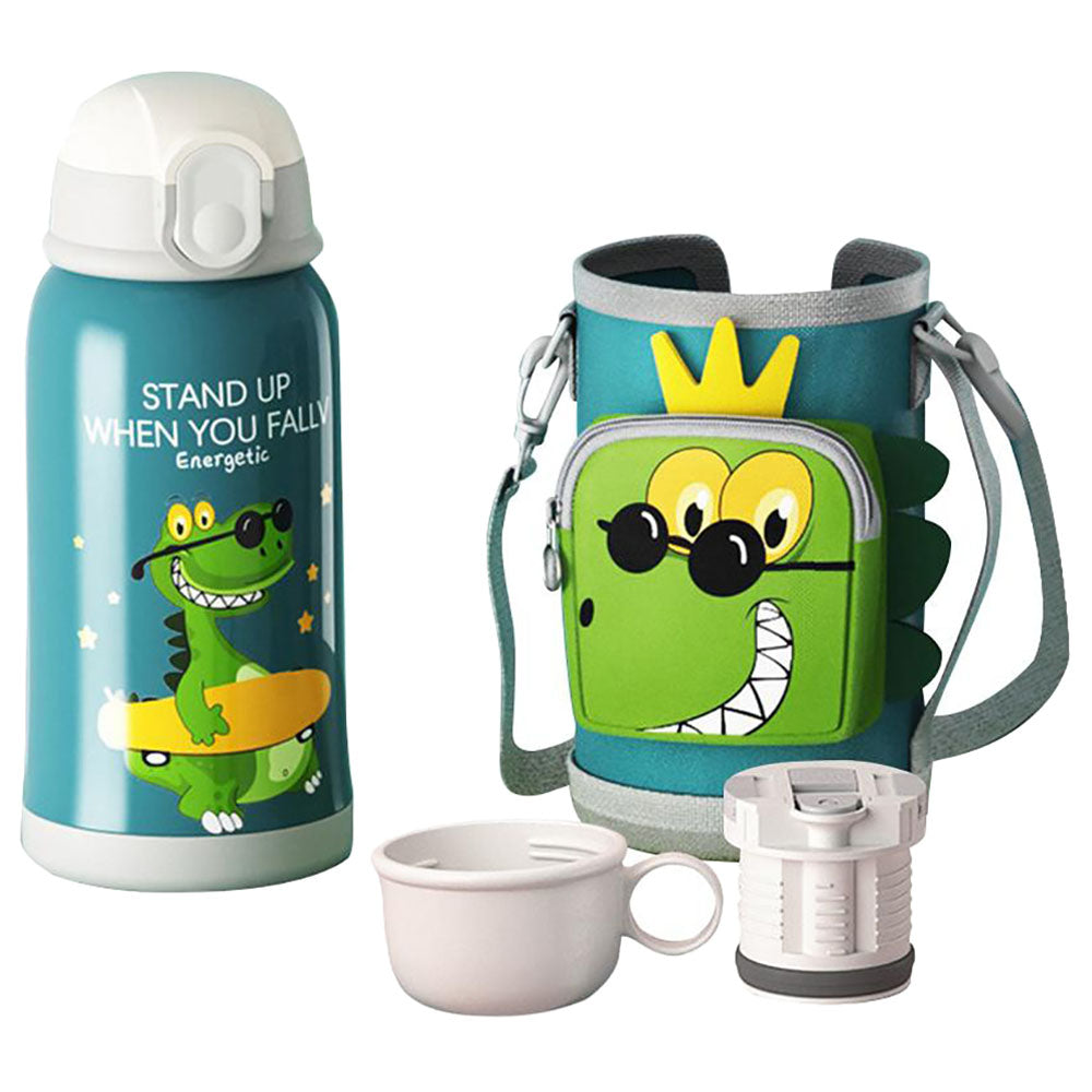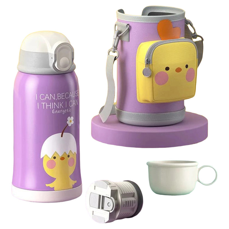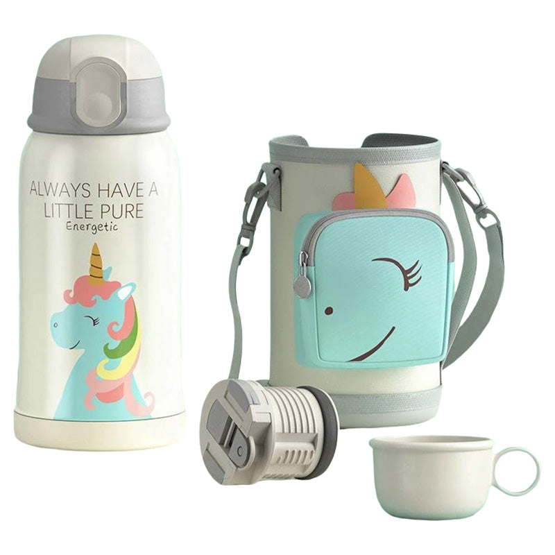 This kid's insulated water bottle has a stainless steel vacuum, it is a personalized thermos bottle for your child's everyday use, especially when traveling and going to school. This bottle is BPA-free and leakproof and durable and also comes with a portable backpack. , Includes: Water Bottle, Bottle Cover, Travel Drinking Cup.