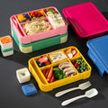 Little Angel - Kids Lunch Box 7 Compartment With Cutlery & Bowl - 1330ml - Green, Blue, Pink