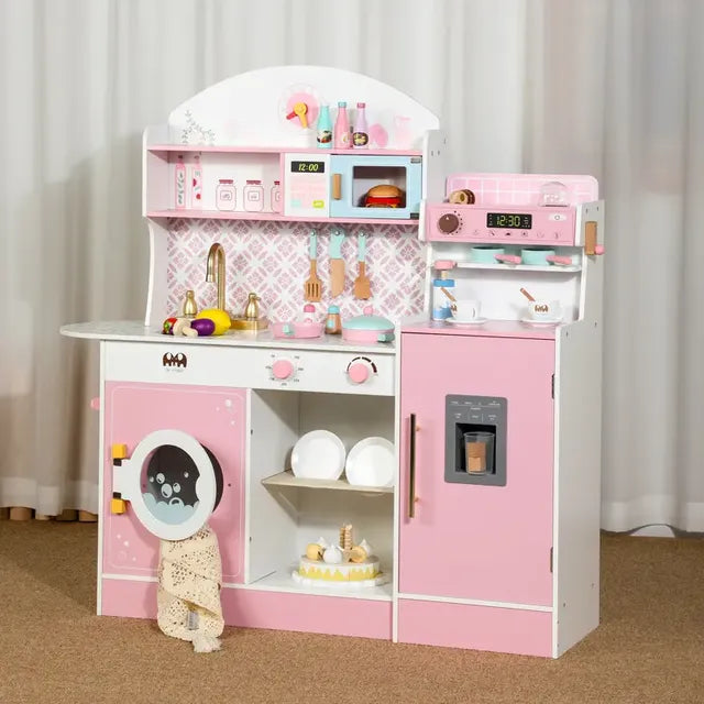 Introduce the Little Angel Kids Wooden Kitchen Playset in Pink, a must-have toy for your budding chef! This adorable and safe role-play kitchen is the perfect gift, designed to spark endless imaginative play while supporting crucial developmental milestones like creativity and fine motor skills. Crafted from durable wood, this comprehensive set boasts realistic features including a stove, oven, microwave, and sink, complete with various fun play accessories for a truly engaging cooking experience. Give your little angel hours of educational fun as they safely explore the world of basic kitchen activities.