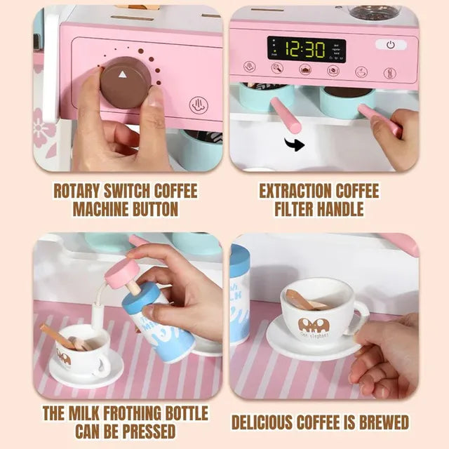 This charming kitchen playset ensures high-quality playtime with its detailed, sturdy wooden construction, offering peace of mind to parents. It's a fantastic addition to any playroom, encouraging children to mimic grown-up tasks and enhancing their social skills. Its appealing pink color makes it an instant favorite. The thoughtful design ensures a safe, nontoxic play environment, making this Little Angel kitchen set a beautiful and functional investment in your child's early learning journey.