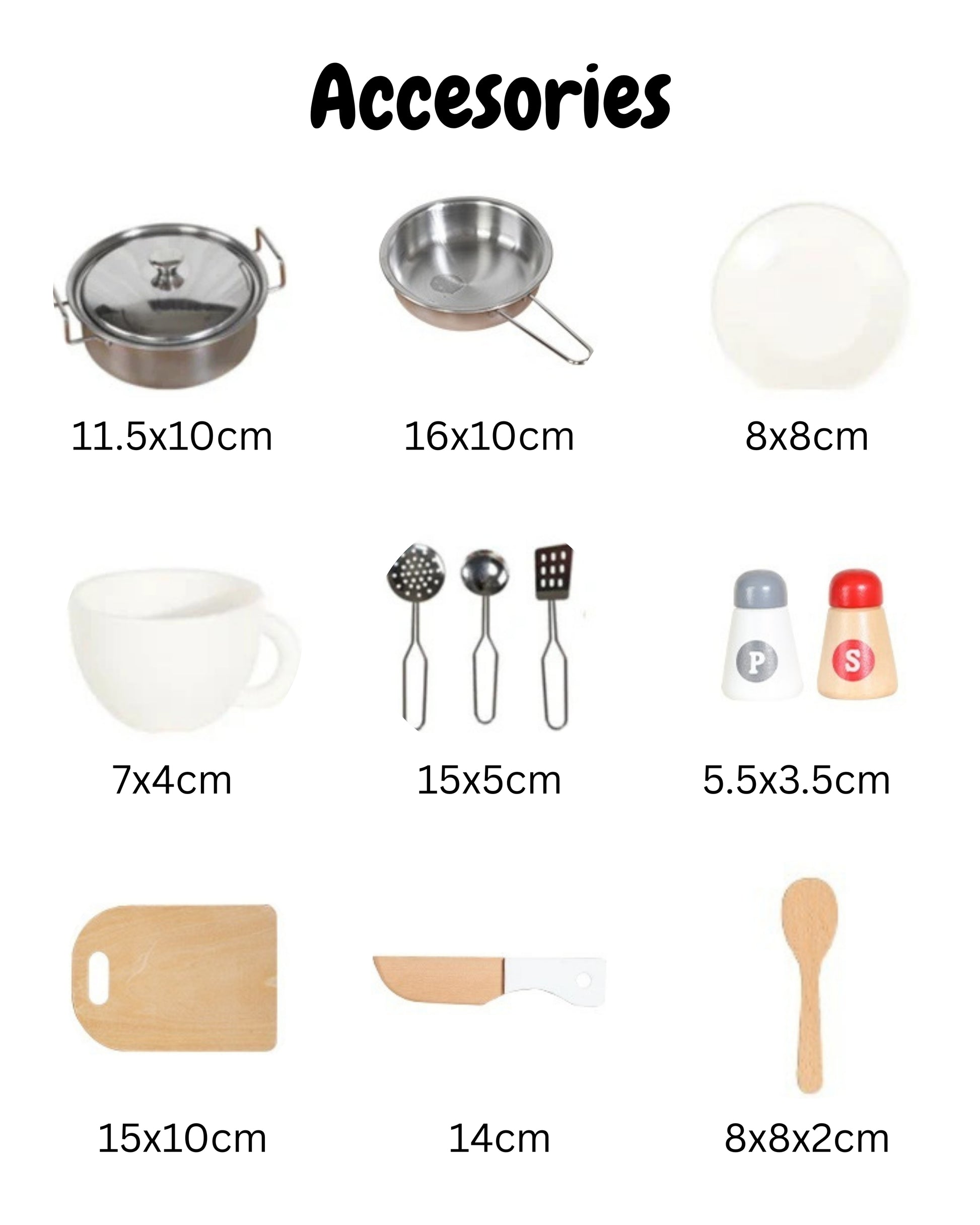 Equipped With 10+ Fun Accessories Including Pots, Pans, Utensils, Chopping Board, Salt & Pepper Shakers, And More, It Offers Kids A Complete Cooking Experience. Built From Eco-Friendly, Durable Wood With Smooth Edges, It Ensures Both Safety And Long-Lasting Fun.