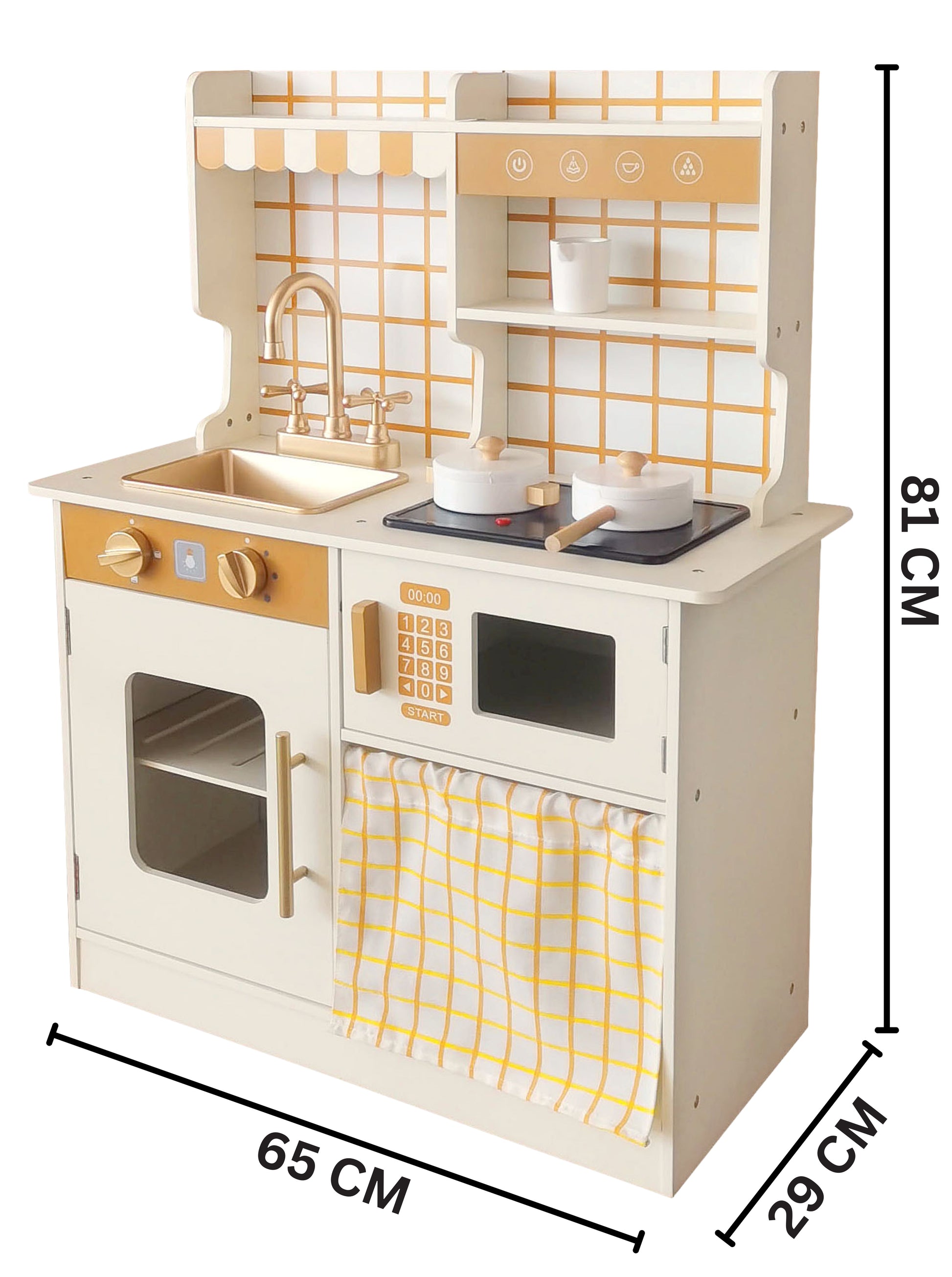 The Little Angel Kids Wooden Kitchen Set (W08810) Is A Beautifully Designed Pretend Cooking Toy For Toddlers And Kids. With Its Bright Yellow-And-White Color Scheme, It Includes A Stove, Oven, Microwave, Sink, And Shelves For Interactive Play. Featuring Realistic Knobs, Movable Doors, And Playful Details, This Educational Wooden Toy Kitchen Encourages Creativity, Role Play, And Motor Skill Development. Made From Eco-Friendly, Non-Toxic Wood, It Is Safe, Sturdy, And The Perfect Gift For Little Chefs Who Love Kitchen Play.