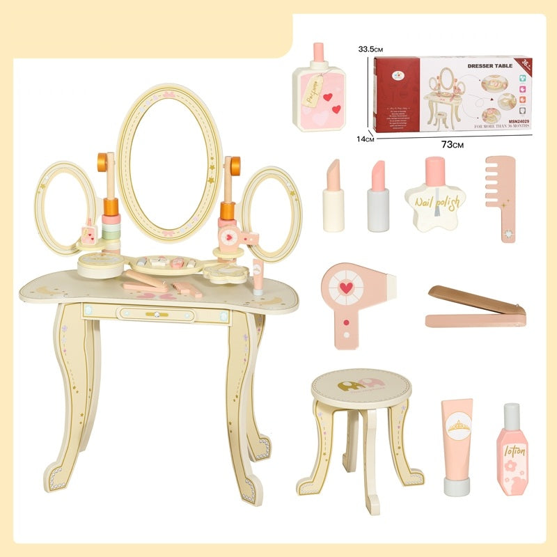 Kids Wooden Vanity Dressing Table Beauty Playset
