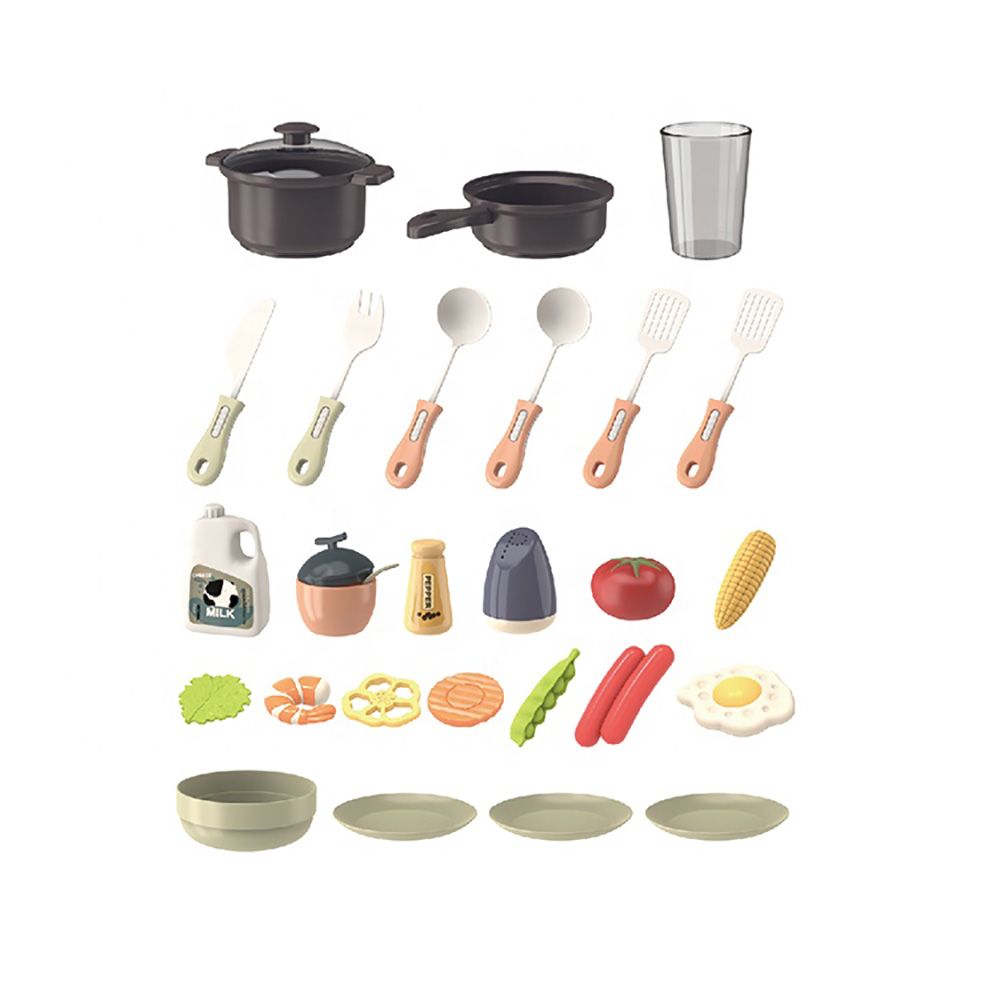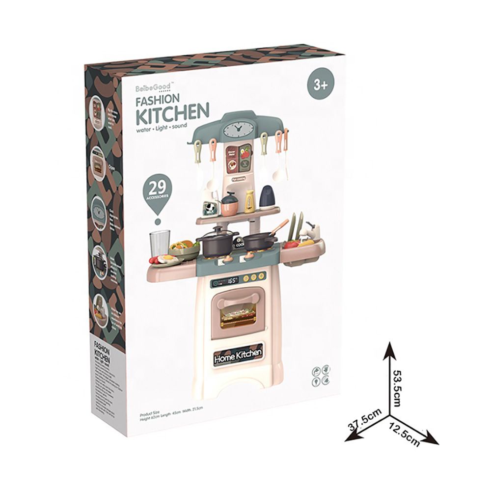 The music kids pretend play kitchen toys have 29 accessories. It is an educational toy where the child can grow their knowledge on daily kitchen activities. This toy stimulates cooking sense, this toy encourages parent-child interaction as playing cook with children will be fun and interesting